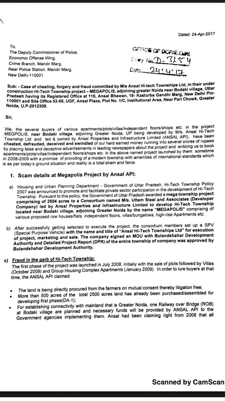 Pawan Verma On Twitter Delhipolice Cpdelhi Eow Reply Your Case Transfer To Barakhamba Road Police Station But Ansal Api Big Scam 16000 Buyers 16000 10 Lakh Paid Per Buyer Sir Help Twitter